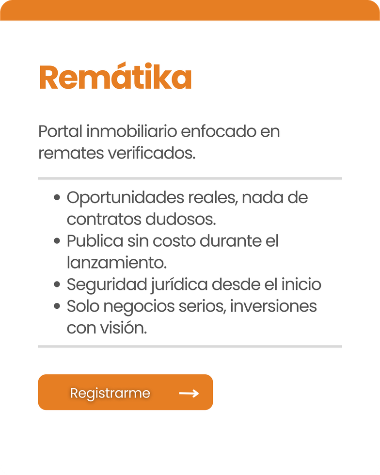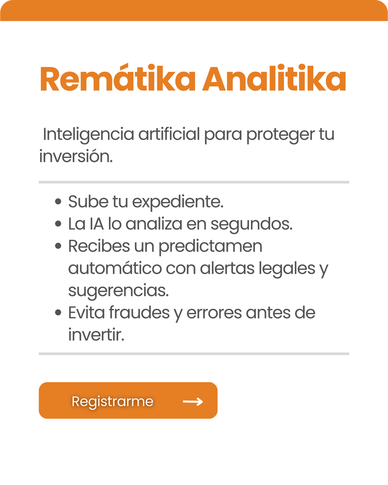 Remátika y Remátika Analítika transforman el mercado: remates certificados, análisis con IA y decisiones sin riesgo. Por primera vez, invertir en remates es seguro, accesible y respaldado por tecnología real.